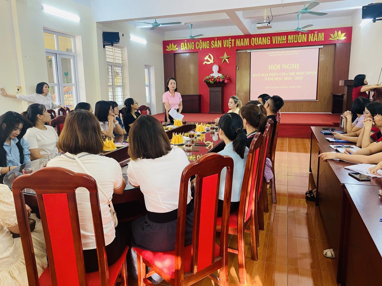 Để ổn định hoạt động của nhà trường trong năm học mới, đồng thời xây dựng mối liên hệ giữa nhà trường, giáo viên với phụ huynh, Chiều ngày 5/10, trường Mầm non Quán Trữ tổ chức thành công buổi họp Ban đại diện Cha mẹ học sinh đầu năm học 2024-2025. Tham gia buổi họp có sự hiện diện của các đồng chí trong BGH nhà trường, ban đại diện CMHS của các lớp và các đồng chí giáo viên đại diện cho 11 lớp.