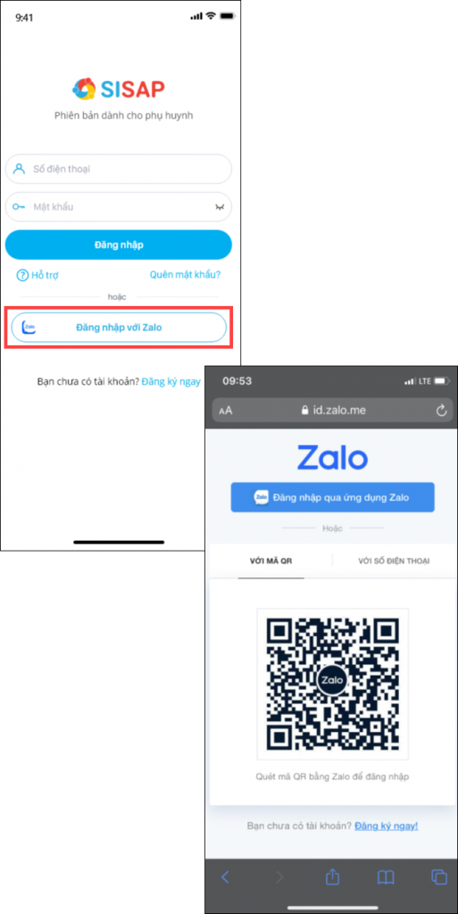 Để có thể sử dụng tài khoản Zalo để đăng nhập vào ứng dụng SISAP Phụ huynh, số điện thoại của anh/chị đăng ký tài khoản SISAP trùng số điện thoại đăng ký Zalo.