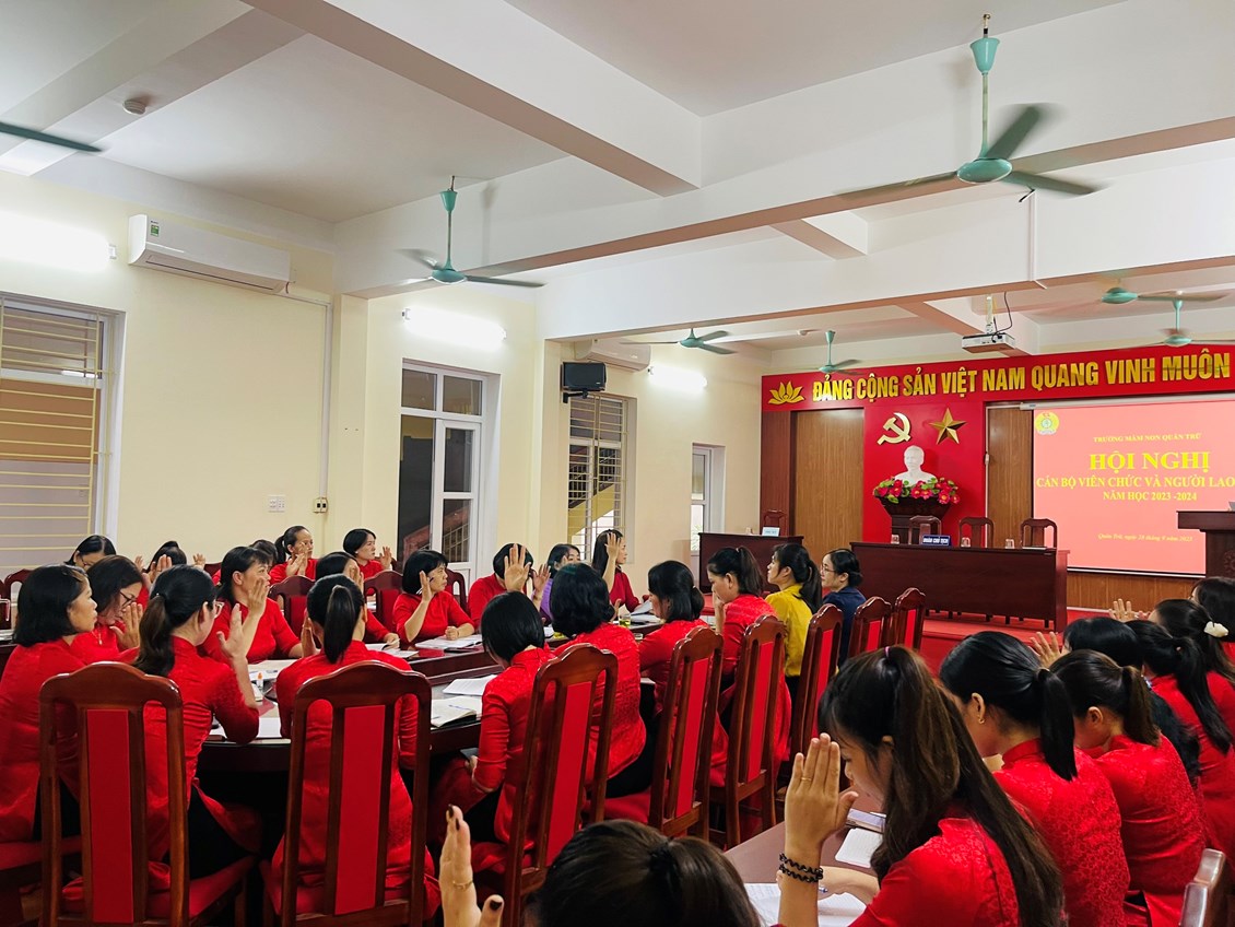 Với tinh thần khẩn trương, nghiêm túc và học hỏi Hội nghị đã thành công tốt đẹp. Tập thể giáo viên, nhân viên, cán bộ quản lý trường mầm non Quán Trữ cùng quyết tâm thực hiện thắng lợi nhiệm vụ năm học 2023-2024 đã đề ra.