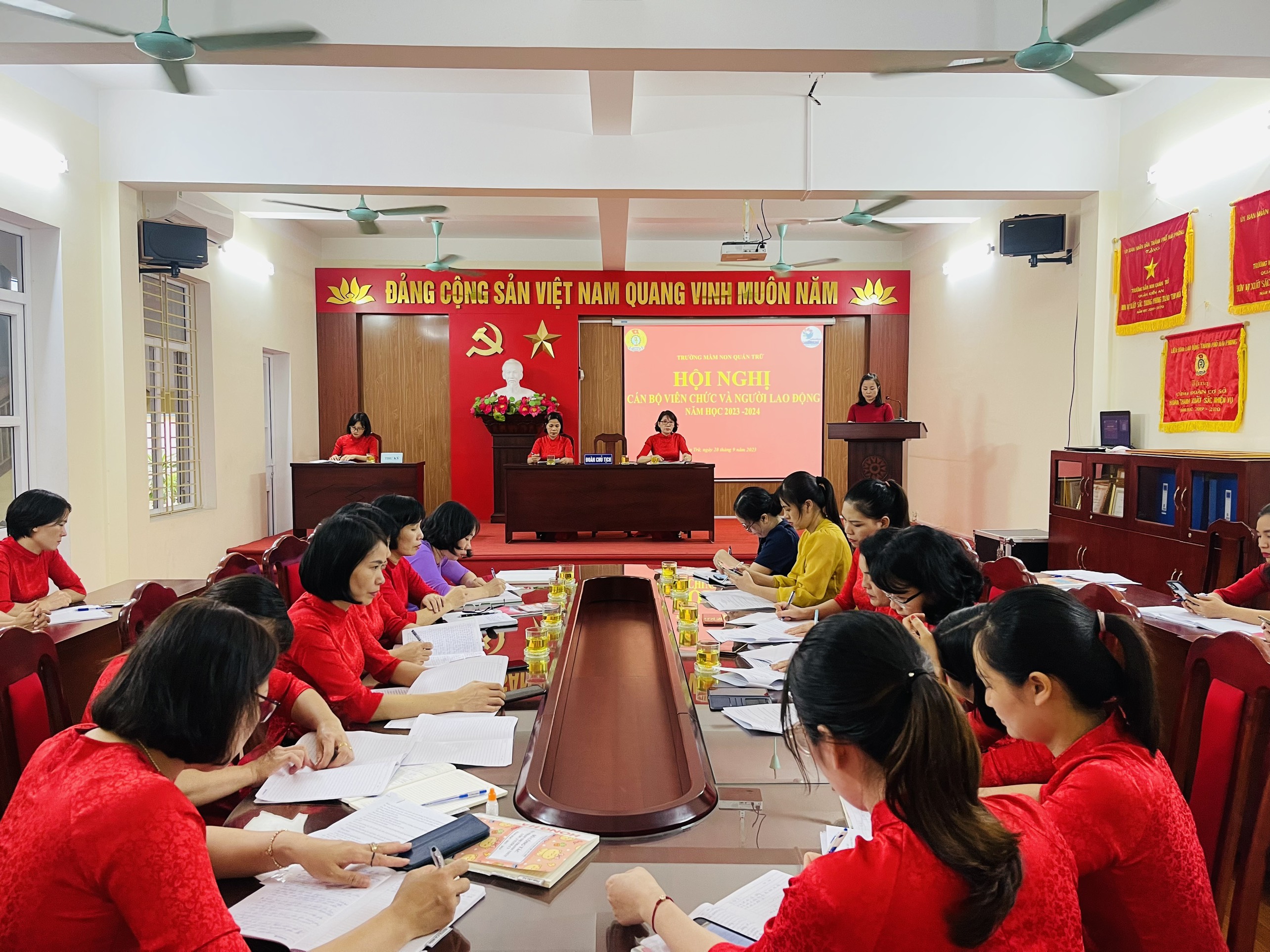 Hội nghị cán bộ, công chức, viên chức là hoạt động thường niên của nhà trường, một mặt đánh giá tuyên dương những kết quả đạt được trong công tác giáo dục của năm học trước, mặt khác nghiêm túc rút ra nguyên nhân của những hạn chế, tồn tại. Từ đó đề ra phương hướng hoạt động phù hợp cho năm học mới.